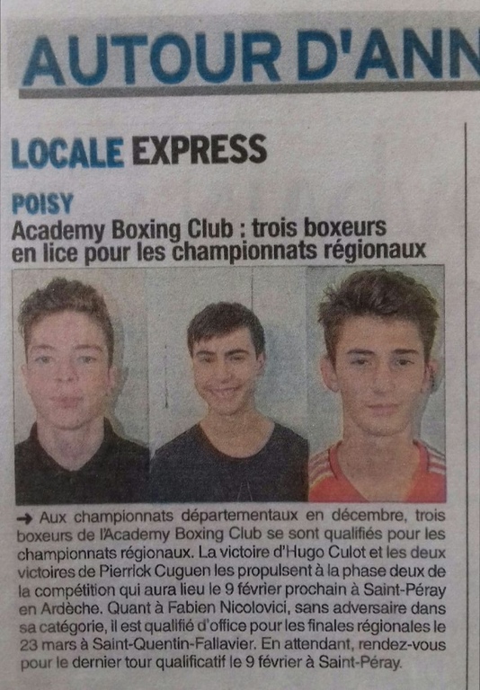 Un nouvel article presse sur nos trois boxeurs régionaux