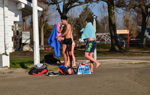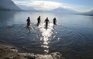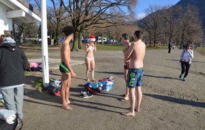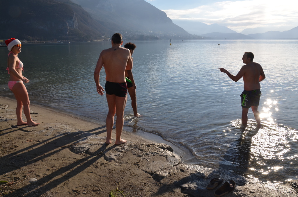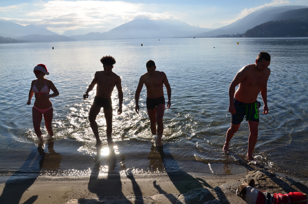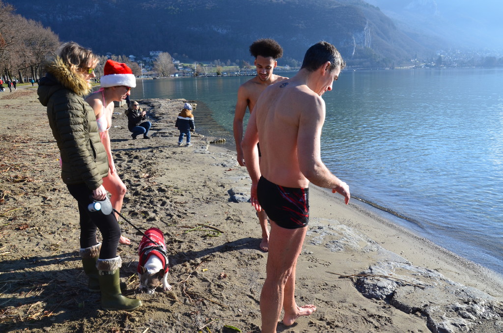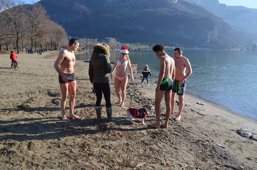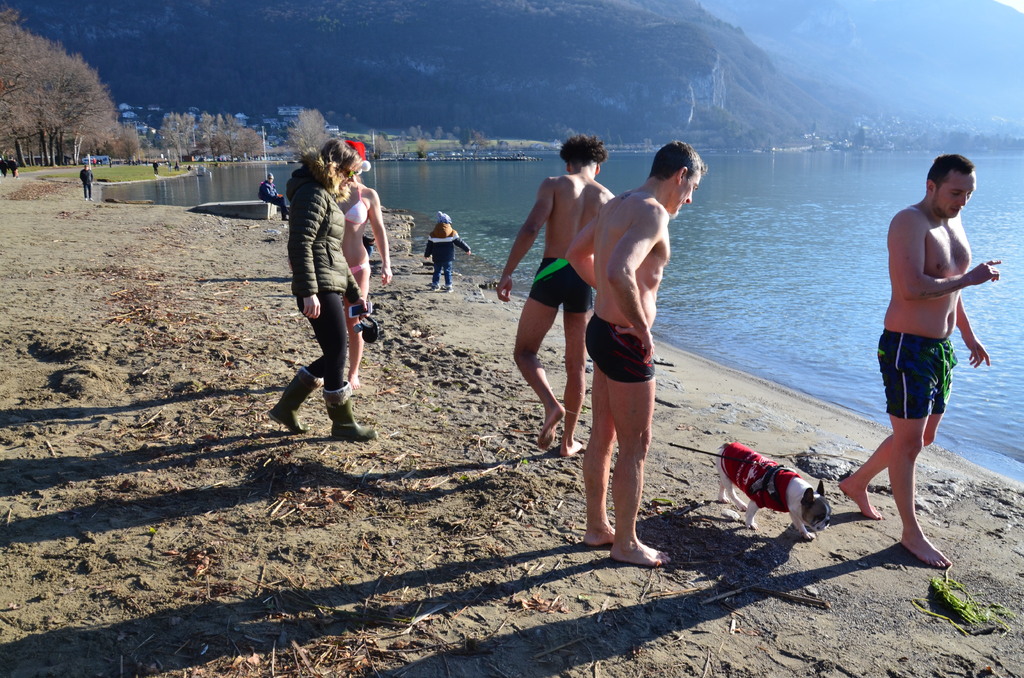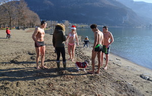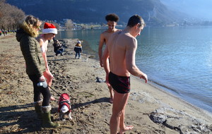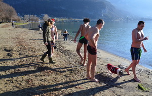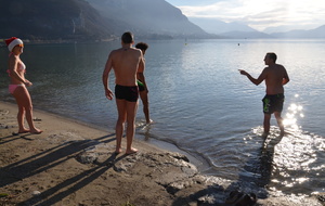 Tradionnelle baignade de début d'année sur la plage d' Albigny.