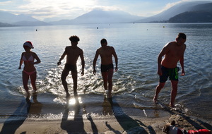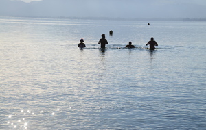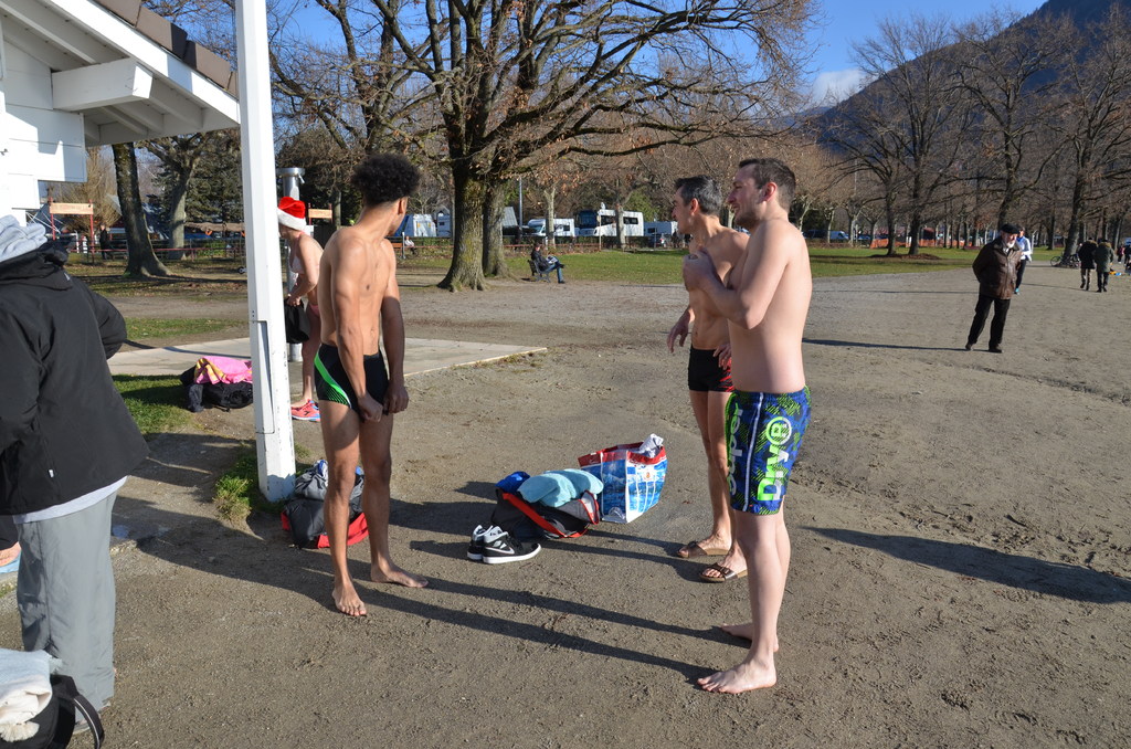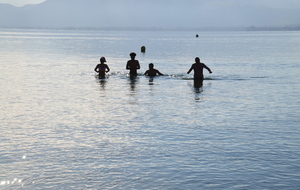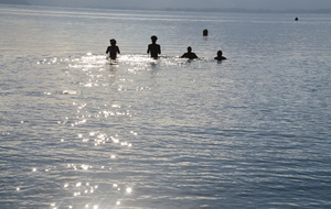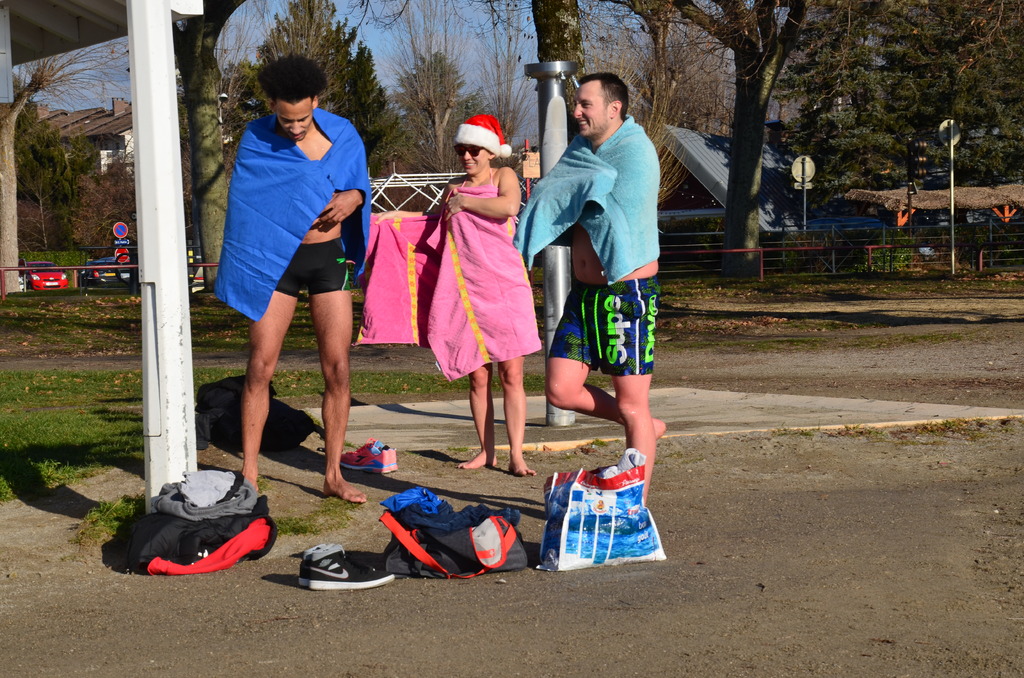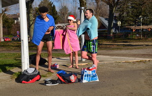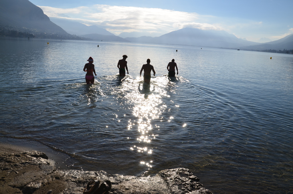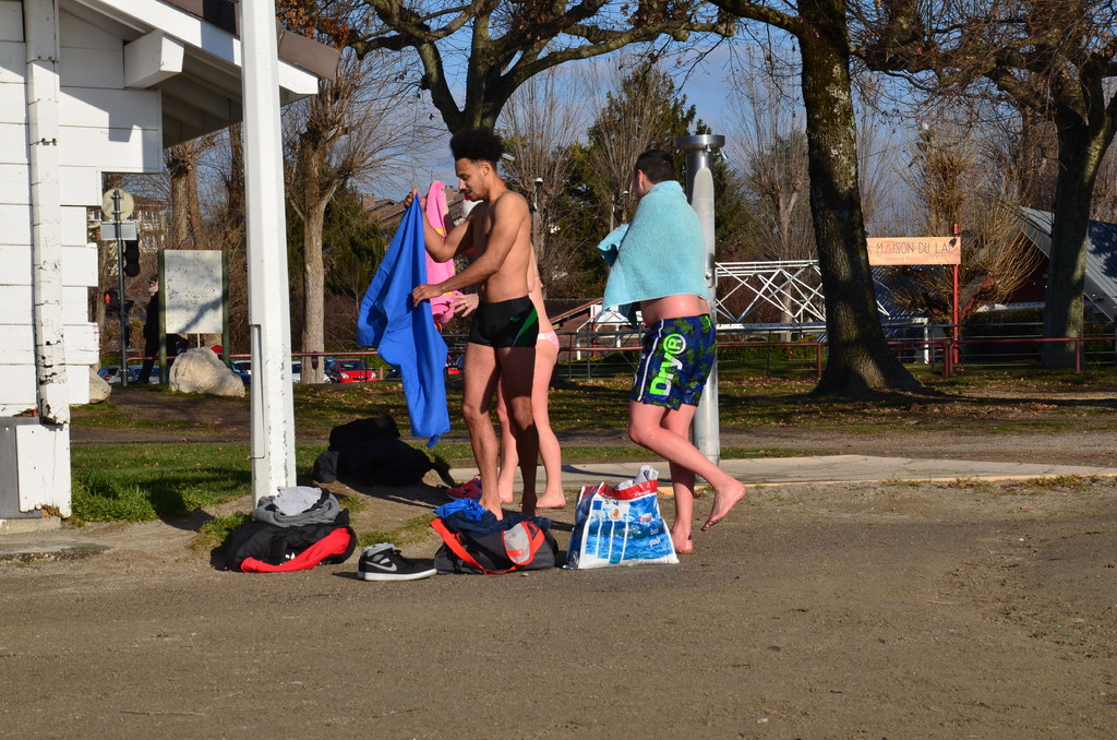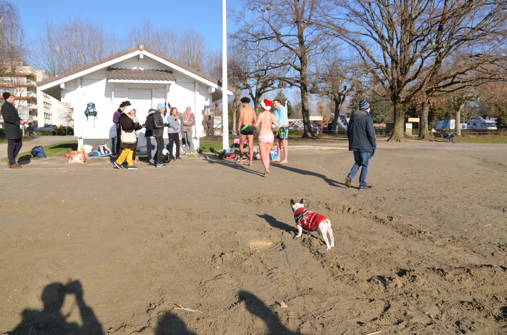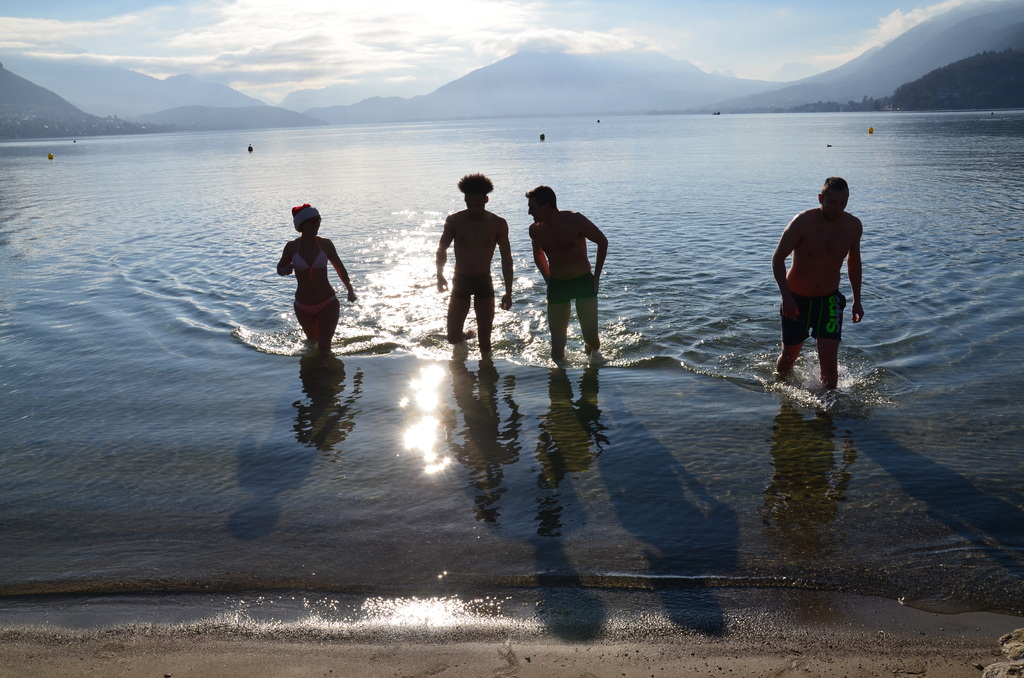 Tradionnelle baignade de début d'année sur la plage d' Albigny.